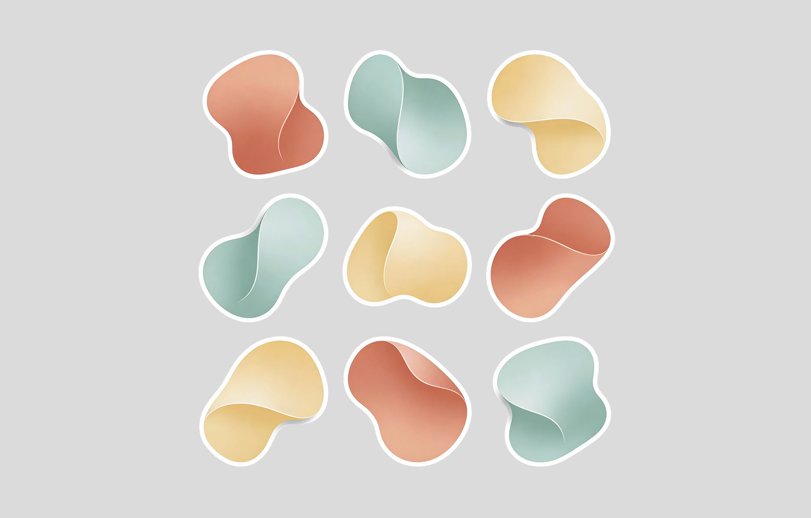 An imaginative group of abstract shape stickers with smooth, flowing lines. Intended to provide character and visual interest to any surface.